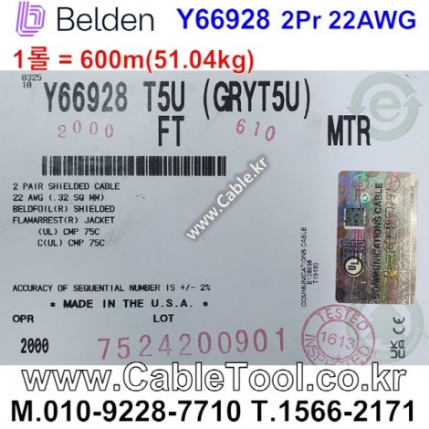 벨덴케이블 Y66928 BELDEN (600m) > 벨덴케이블 RS485 BELDEN Y66928 2Pr 22AWG RS 485 Applications