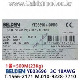 벨덴케이블 BELDEN YE03696, 500m, 3C x 18AWG+LSTZ, PE Ins / Overall Beldfoil® Shield / FRNC Jacket